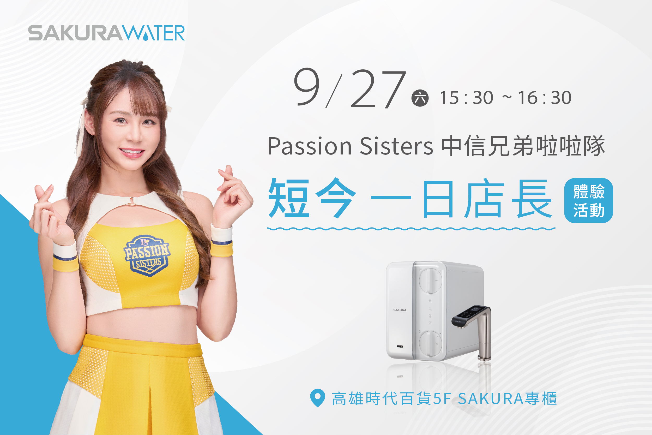 配合百貨周年慶活動,SAKURA WATER特別於9月27日(六)邀請PASSION SISTERS中信兄弟啦啦隊短今擔任櫻花時代百貨專櫃的一日店長,為大家介紹廚下RO雙溫淨熱飲XP01這台明星商品。活動現場除了介紹與展示產品特色,更能親身體驗XP01沖泡的新鮮茶飲。現在只要到櫻花粉絲專頁貼文連結留言,還可以參加一日店長準備的精美禮品!快來報名參加,體驗廚下RO雙溫淨熱飲的新鮮好水,感受便利健康的美好生活。