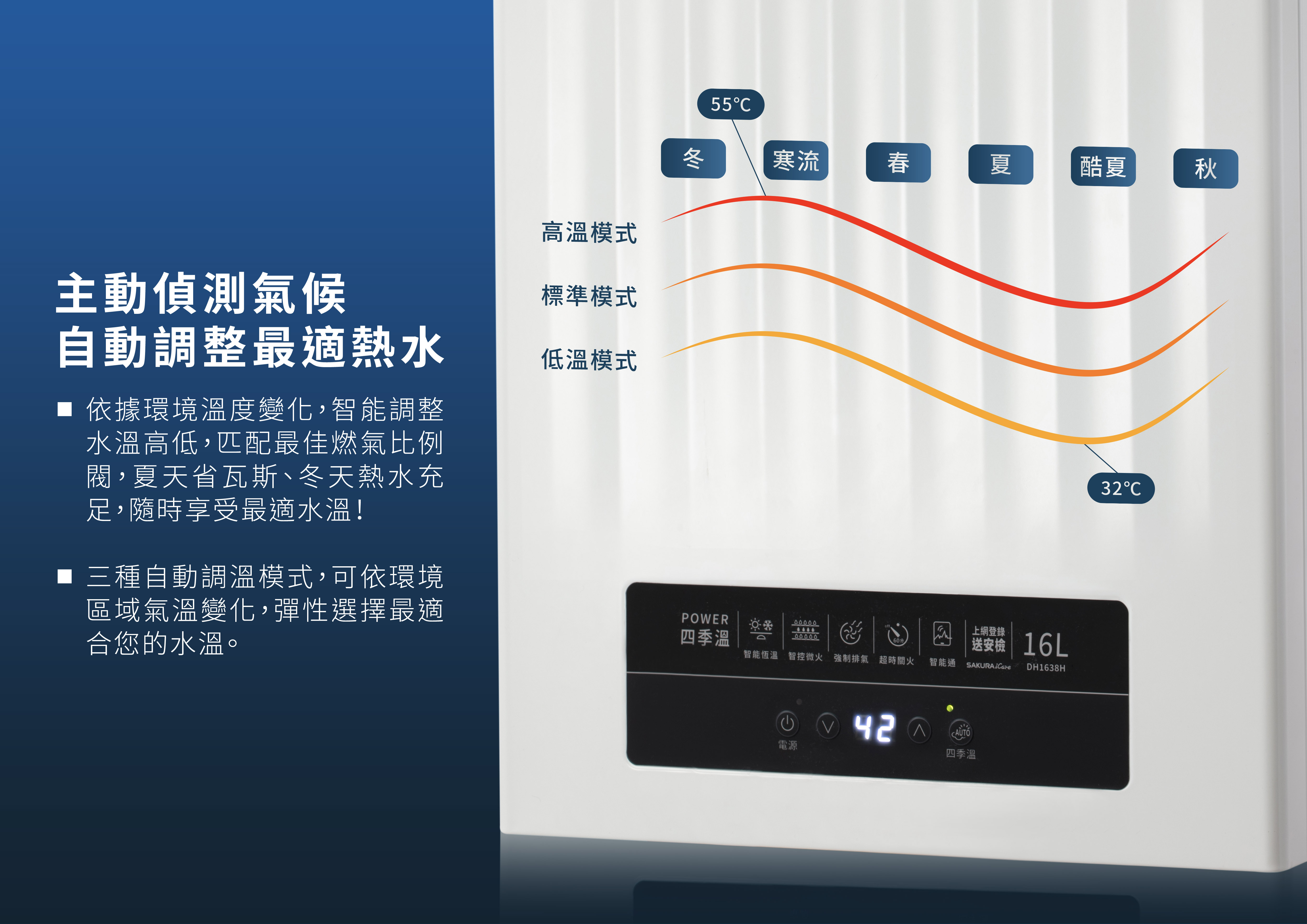 三種自動調溫模式,彈性選擇最佳出水溫度