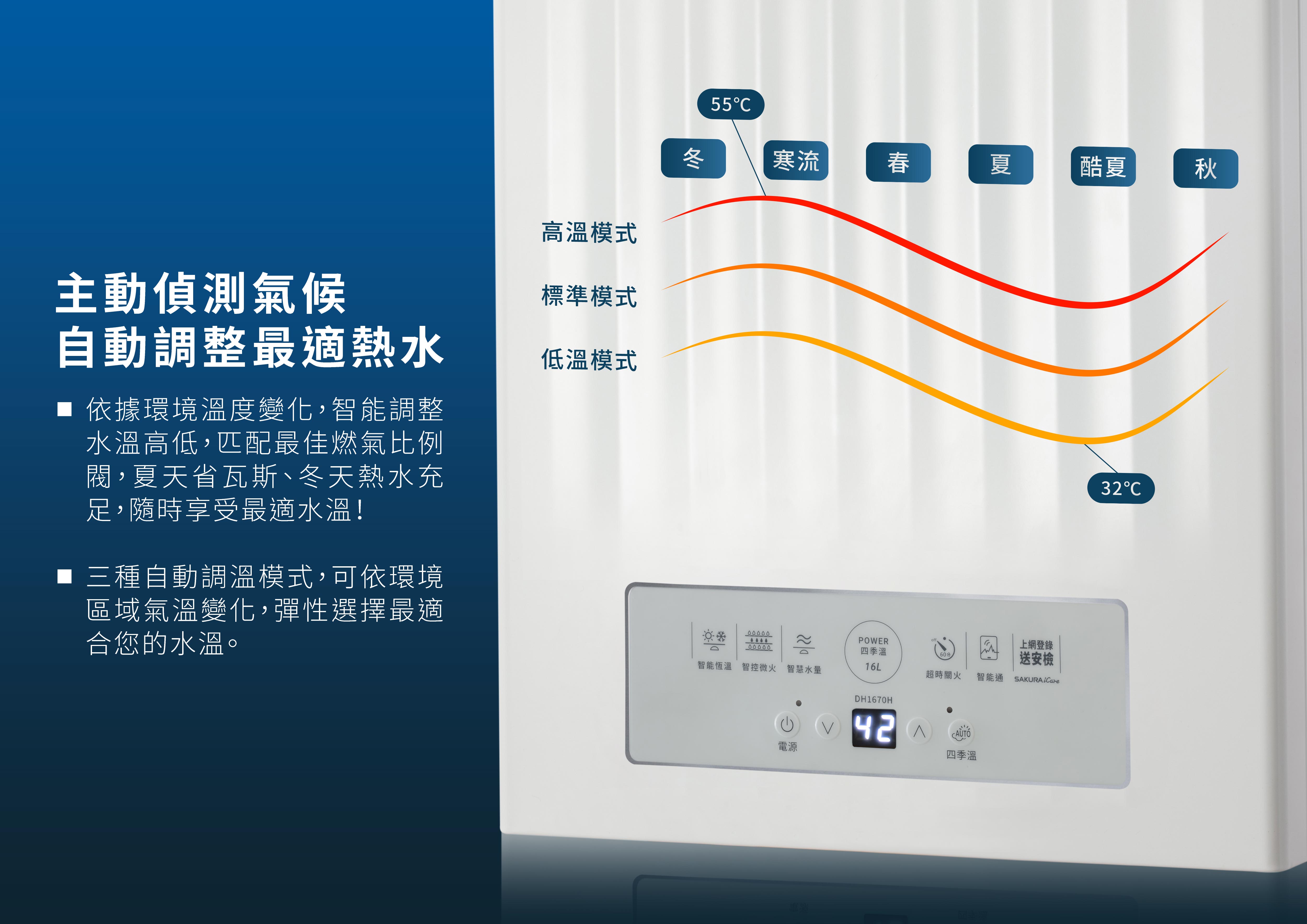 三種自動調溫模式,彈性選擇最佳出水溫度
